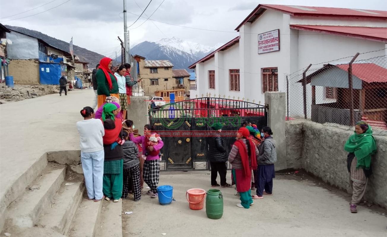 हुम्ला । हुम्लाको सदरमुकाम सिमकोटमा खानेपानीको चरम अभाव भएको भन्दै स्थानीय महिलाहरूले जिल्ला प्रशासन कार्यालय हुम्लामा घेराउ गरेका छन् । गत फागुन २२ गतेदेखि यता सदरमुकाम सिमकोट बजारमा खानेपानीको चरम अभाव भएको भन्दै मंगलबार जिल्ला प्रशासन कार्यालय हुम्लामा बजारको एकताचोक र काठे चु
