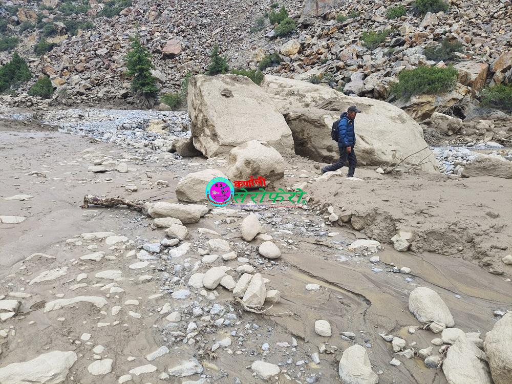हुम्ला । नाम्खा गाउँपालिका–६ स्थित लिमिको तिल गाउँमा बाढी पहिरो आएको छ । बिहिबार राती एक्कासी तिलगाउँ र कञ्जुम गुम्बाको बिच भएर बग्ने सेखाङलुग्वा खोलामा राती ११ बजेबाट बाढी पहिरो आएको हो । बाढी आएपछि स्थानियबासीन्दालाई रातीकै समयमा सुरक्षति स्थान हिमशिखर आधारभुत बिद्यालयको खुल्ला चौरमा सारिएको लिमिका वडा अध्यक्ष पाल्जोर तामाङले बताउनुभयो । अध्यक्षको गाउँ हल्जी भएकाले आफु विहान ६ वजे पहिरो ग्रस्त क्षेत्रमा पुगेको उहाँले बताउनुभयो ।