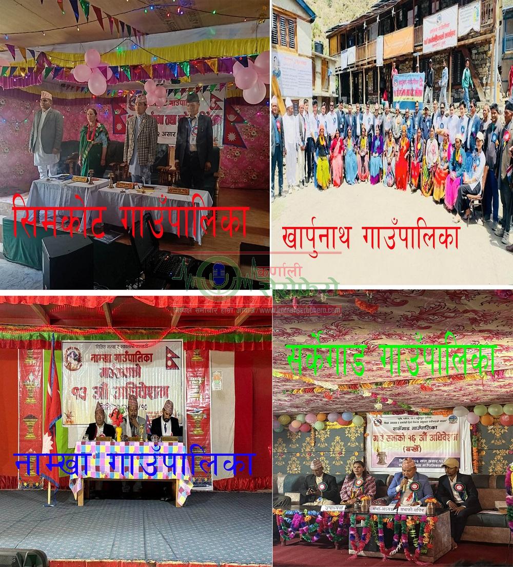 हुम्ला । हुम्ला जिल्लामा रहेका सातवटा स्थानीय तह मध्येका चारवटा स्थानीय तहले आफ्नो गाउँसभा मार्फत नयाँ आर्थिक वर्ष २०८२÷०८३ को नयाँ बजेट तथा कार्यक्रम ल्याएका छन् । जिल्लाको नाम्खा, सिमकोट, खार्पुनाथ र सर्केगाड गाउँपालिकाले आफ्नो गाँउ सभा मार्फत नयाँ बजेट र कार्यक्रम ल्याएका हुन् । असार १० गते भित्र गाउँ सभामा बजेट तथा कार्यक्रम पेश गर्नु पर्ने कानूनी ब्यवस्था अनुसार गाउँपालिकाले आगामी आर्थिक वर्षको नीति, बजेट तथा कार्यक्रम सभामा पेश गरेका हुन् । सर्केगाडलाई १६ औँ, खार्पुनाको १७ औँ, नाम्खाको १३ औँ र सिमकोटले ११ औँ गाउँ सभा मार्फत ल्याएका छन् ।