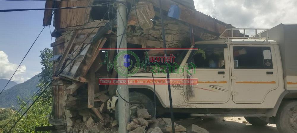 घरको ढोका सहित एक साइटको पुरै देवल भत्किएको छ । उक्त घटना स्थलमा प्रहरीको टोलि पुगेको प्रहरी निरिक्षक जङगबहादुर सिंहले बताउनुभयो । घर सिमकोट गाउँपालिका–५ का पदम रावतको रहेको छ ।