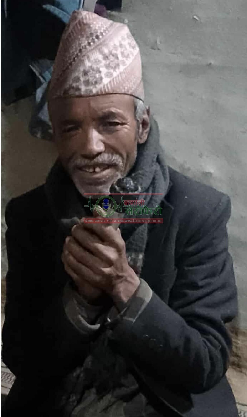 हुम्ला। सिमकाेट गाउँपालिका-३ बरगाउँका ५३ वर्षिय पर्वसिंङ सुनार मृत अवस्थामा भेटिएका छन् । ११ दिनदेखि वेपत्ता भएका सुनार कात्तिक १४ गते दिउसाे सिमकाेट गाउँपालिका-३ बरगाउँ स्थित बाखा चाल्न भन्ने ठाउँमा मृत अवस्थामा भेटिएकाे मृतकका ज्वाइँ धनविर सुनारले जानकारी दिए ।