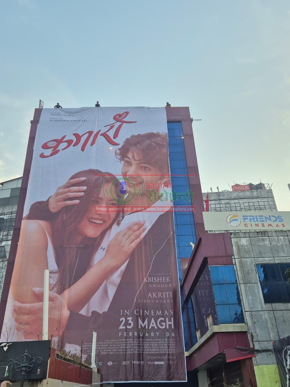 काठमाडौं । धरान – माघ २३ गते प्रदर्शनमा आउने नेपाली चलचित्र ‘कुमारी’ ले प्रवर्द्धनका लागि नेपालमै अहिलेसम्मकै सबैभन्दा ठुलो पोस्टर सार्वजनिक गरेको छ। धरानस्थित फ्रेन्ड्स सिनेमा हल रहेको ८ तल्ले भवन पूरै छोपिने गरी चलचित्रको होर्डिङ बोर्ड राखिएको हो।