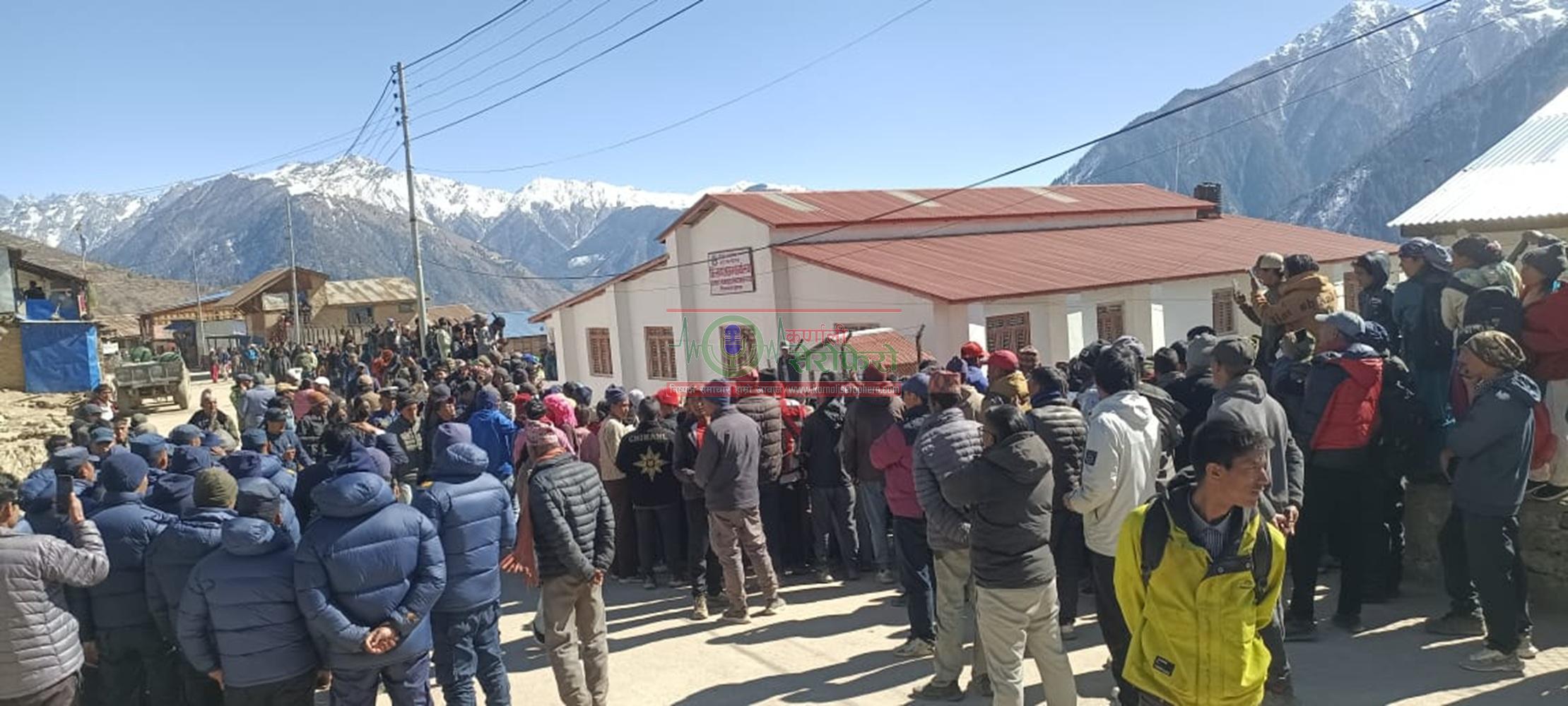 हुम्ला । आफूहरुलाई सेवा सुविधा कम भएको भन्दै निर्वाचन प्रहरीहरूले जिल्ला प्रशासन कार्यालय घेराउ गर्नुका साथै नाराबाजी समेत गरेका छन् । उनीहरूले फागुन ५ गते जिल्ला प्रशासन कार्यालय अगाडि भेला भएर नाराबाजी गरेका हुन् । उनीहरु पहिले भनिएको भन्दा कम तलब दिन लागिएको भन्ने खबर सुनेपछि असन्तुष्टि जनाउँदै आन्दोलनमा उत्रिएका हुन् ।