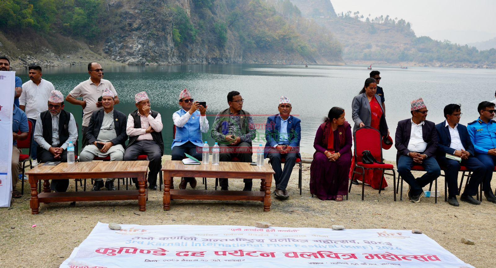 काठमाडौं । सल्यानको मनोरम पर्यटकीय गन्तव्य कुपिण्डे दह प्राकृतिक सौन्दर्यमा मात्र सीमित रहेन, यतिबेला यो कर्णालीलाई विश्वसामु चिनाउने सिनेमाको पर्दा बन्न तम्सिएको छ। “घुमौँ कर्णाली, हेरौँ कर्णाली” र “जनजनमा नेपाली चलचित्र, मनमनमा नेपाली चलचित्र” भन्ने मूल मर्मलाई आत्मसात गर्दै आयोजना गरिएको तेस्रो कर्णाली अन्तर्राष्ट्रिय चलचित्र महोत्सवको दोस्रो दिन कुपिण्डे दहको किनारमा भव्यताका साथ सम्पन्न भएको छ। सुर्खेतबाट आरम्भ भएको यो कला र पर्यटनको कुम्भमेलाले कर्णालीको लुकेको कला, संस्कृति र प्राकृतिक छटालाई चलचित्रको लेन्सबाट विश्वबजारमा स्थापित गर्ने उच्च महत्वकांक्षा बोकेको छ।